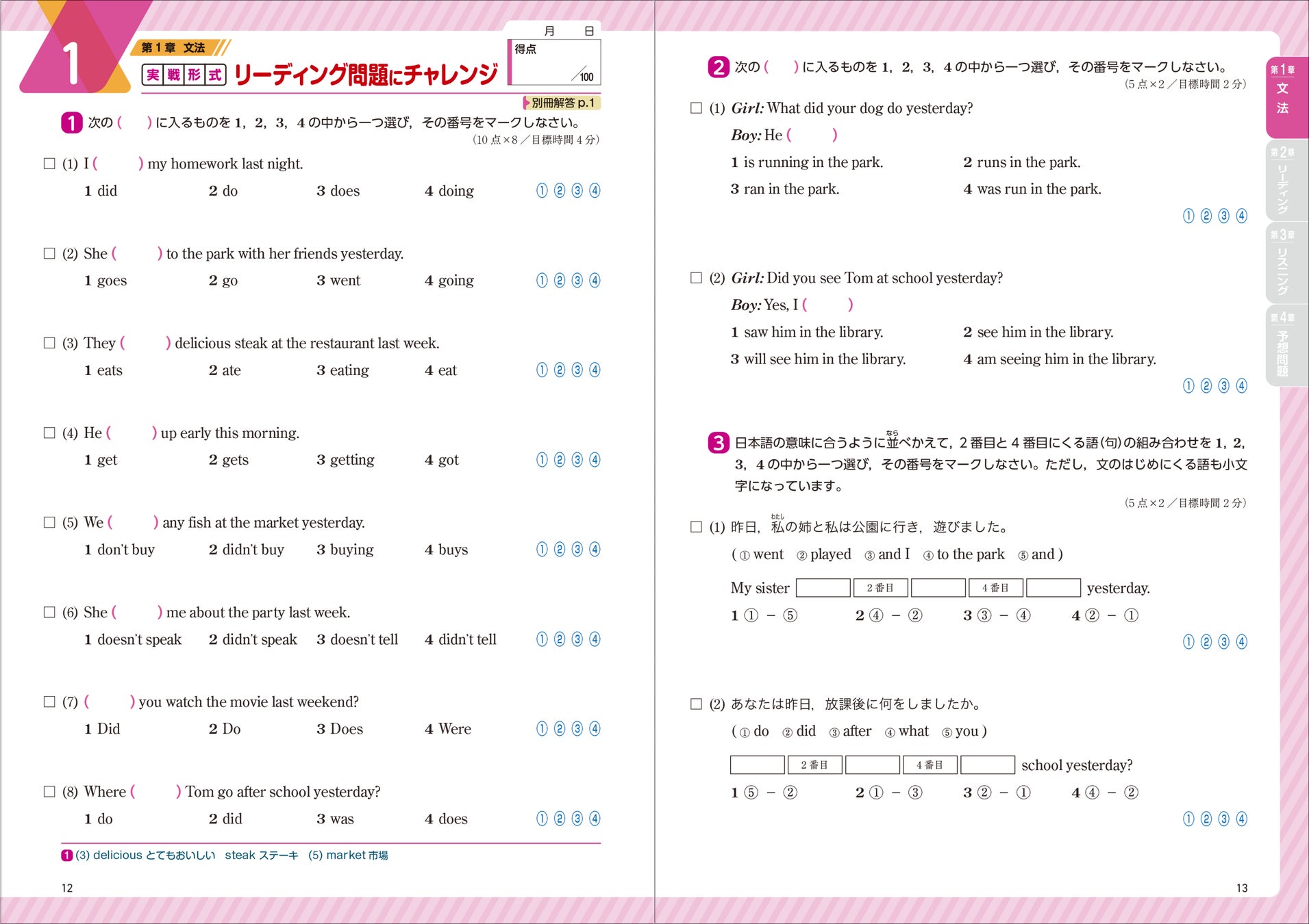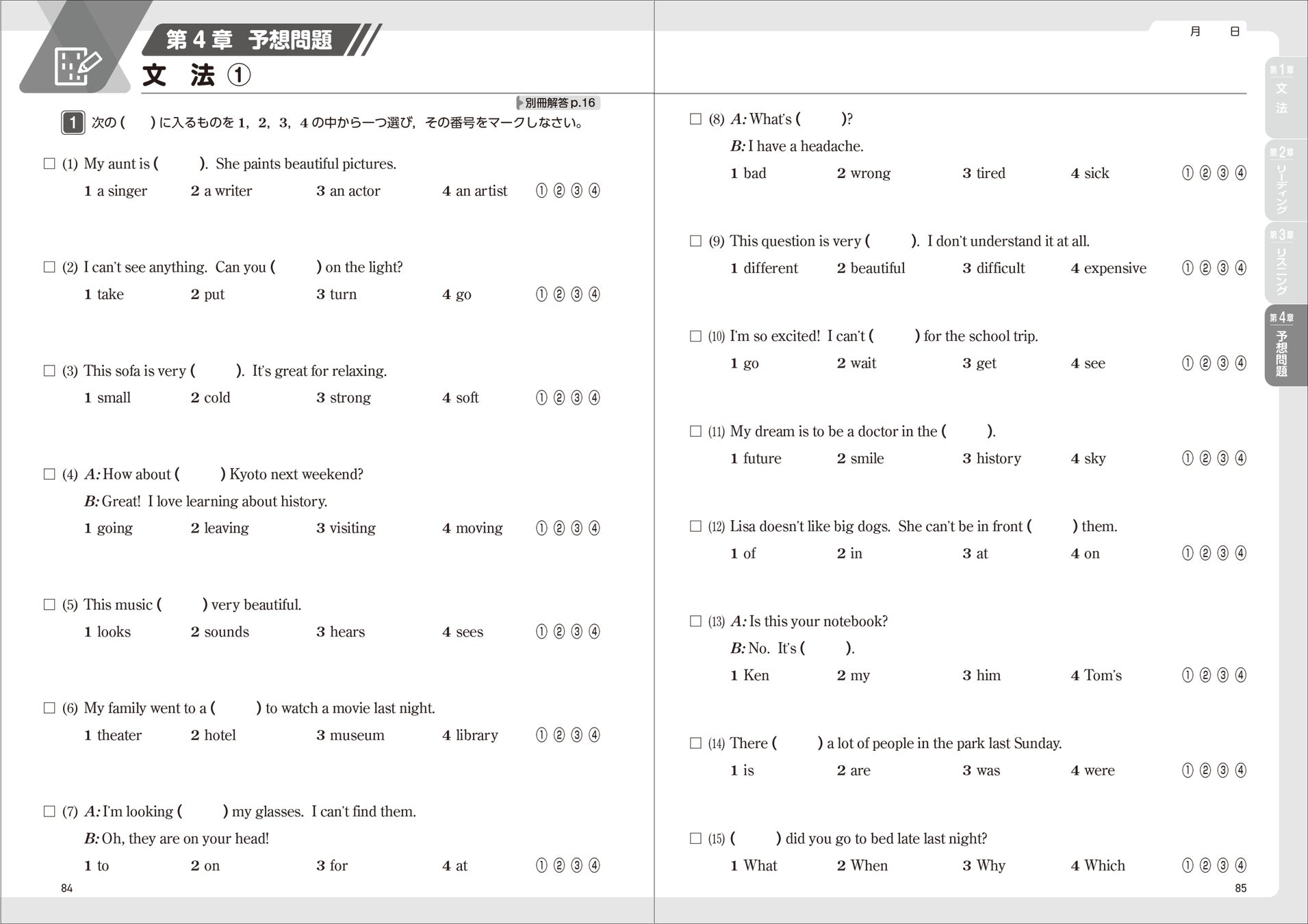 英検の筆記問題と同じ形式の問題を数多く解くことで、本番の試験でも慌てずに解答することができます。