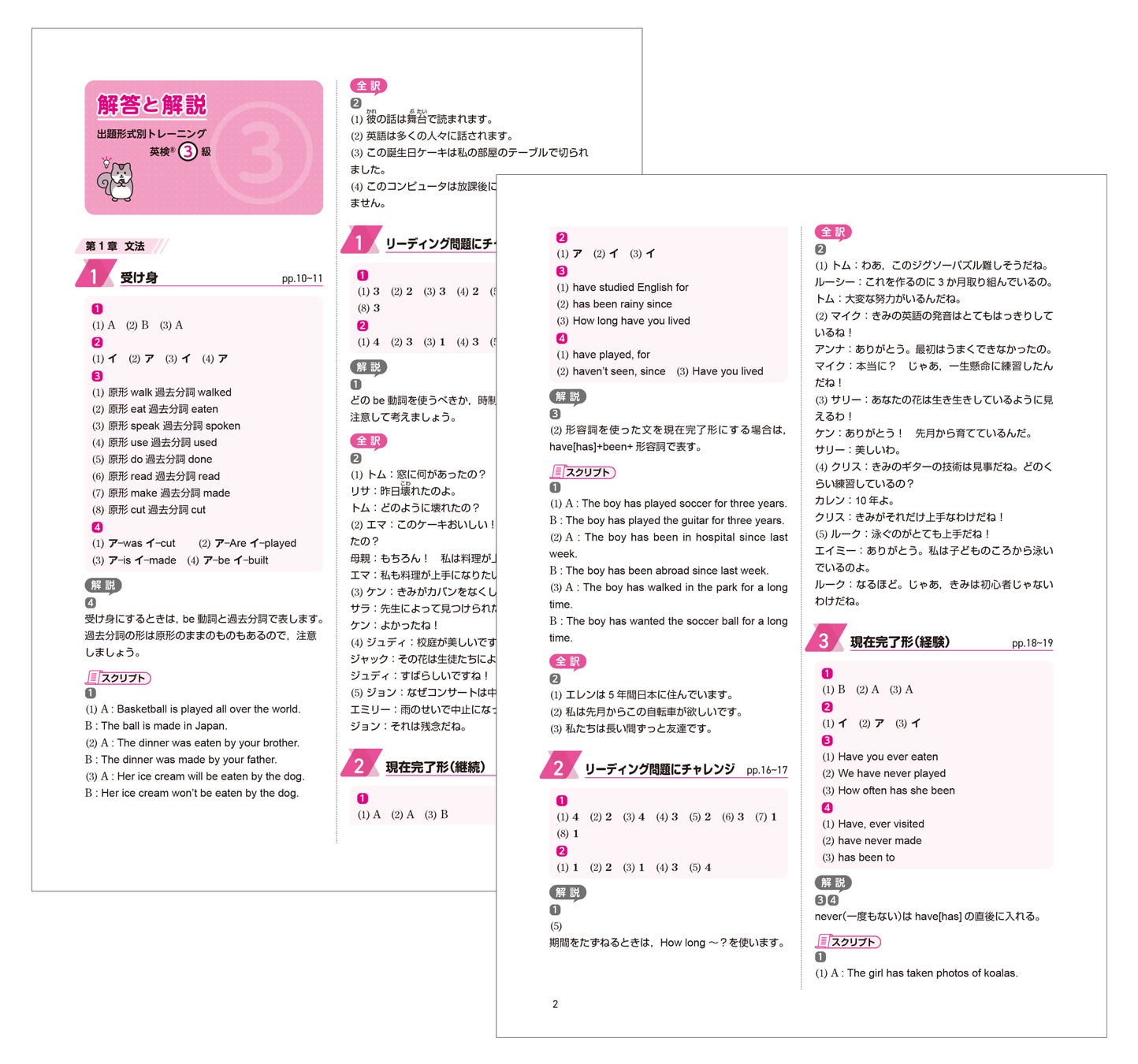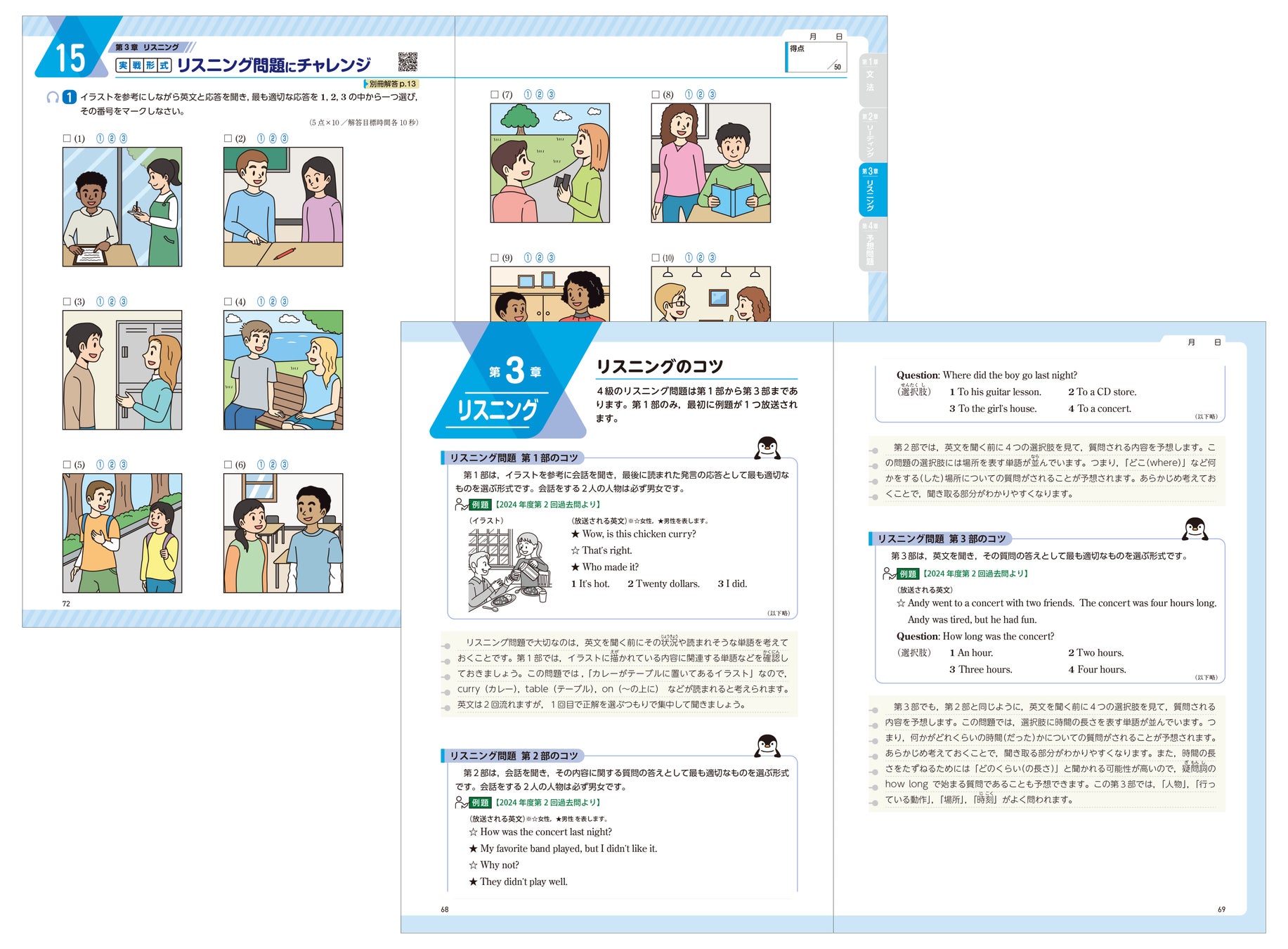 ●この1冊で筆記試験からリスニング、3級はライティングや二次試験の面接までしっかり対策