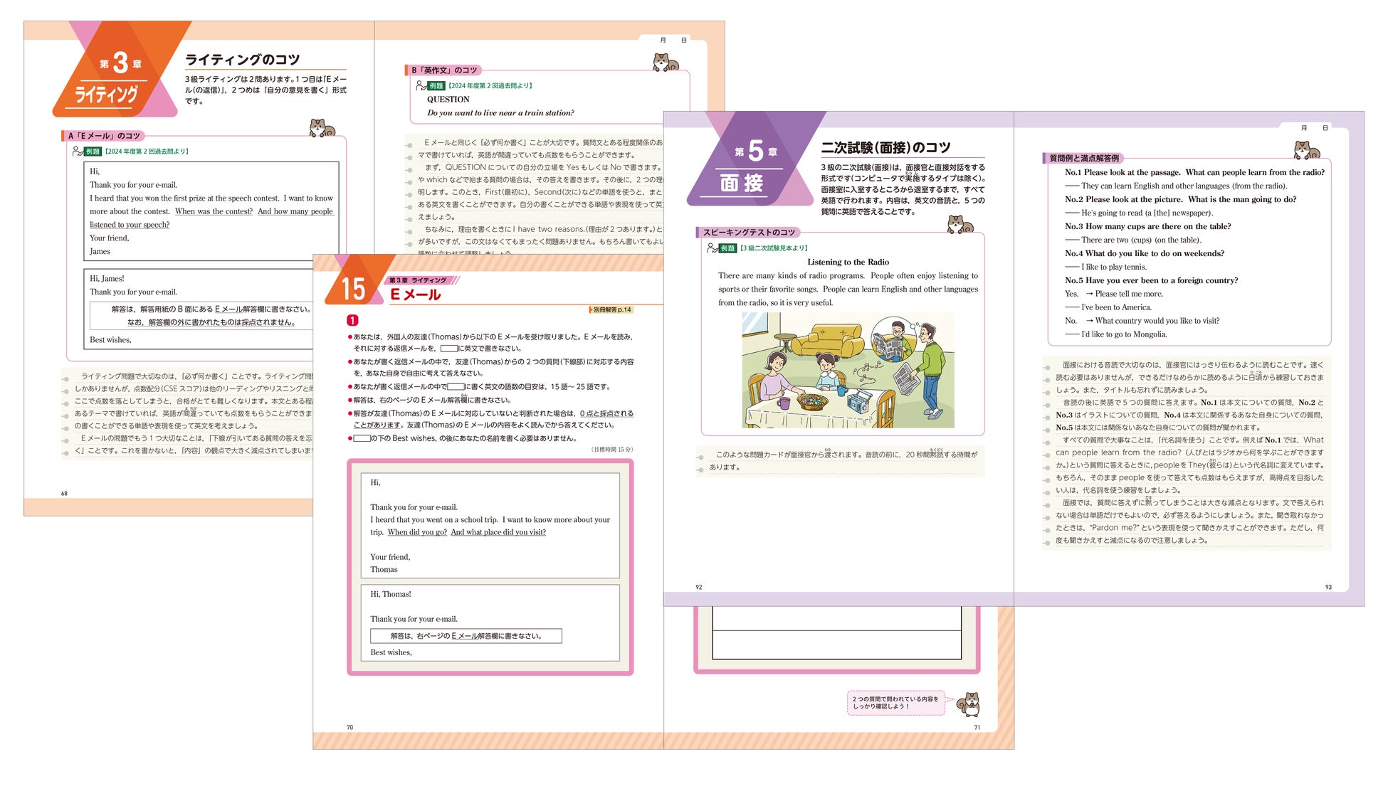 2024年度からライティングに新たに導入された「Eメール問題」にも対応。一次試験合格者に課される面接試験対策もできます。