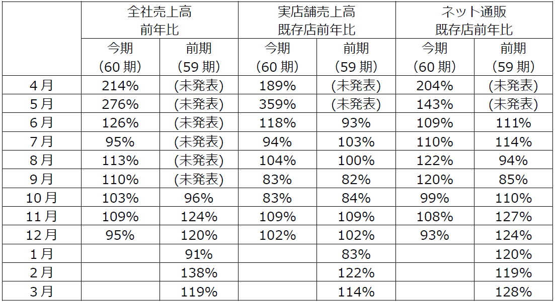 GINZALoveLoveは、アプリ会員を中心に1to1プッシュ通知や顧客へのデータマーケティングの展開を行ってきた結果、緊急事態宣言明けで売上が伸びていた前年同月度をさらに上回ることができました。ネット通販事業については、前年同月度を少し下回る結果となりました。