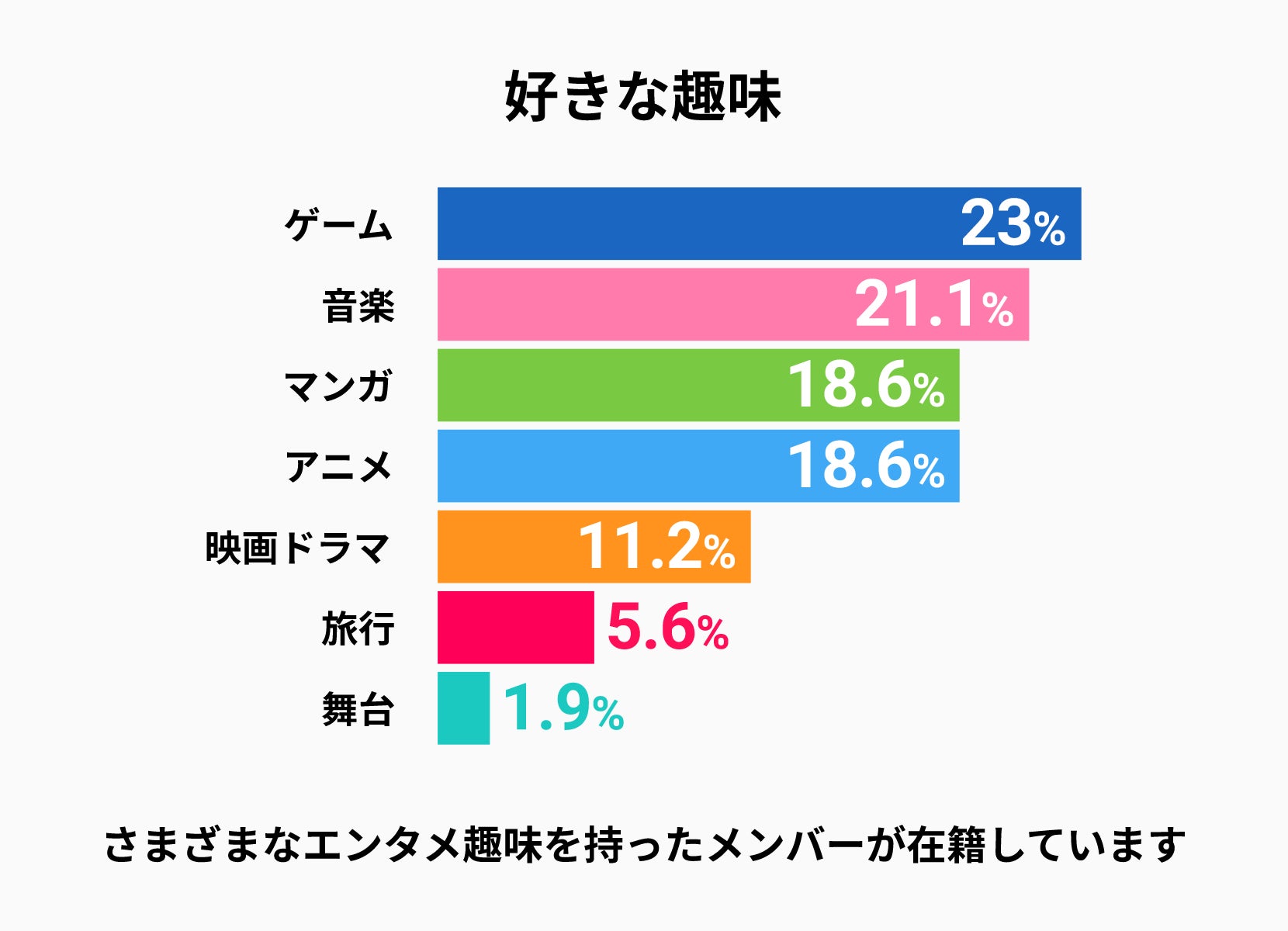 エンタメを中心とした多趣味を持つメンバーが多く、当社のバリューの一つである『人生を楽しもう。』がしっかりと体現されています。