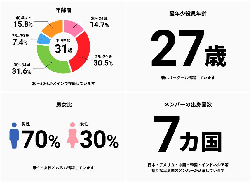 さまざまなバックグラウンドを持つメンバーが在籍し、性別や年齢を問わず活躍しています。