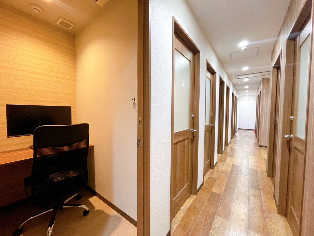 そこで今回、1フロアを増床して1名用完全個室を14室、2名用完全個室を2室、4名用会議室を1室を新たにご提供開始します。