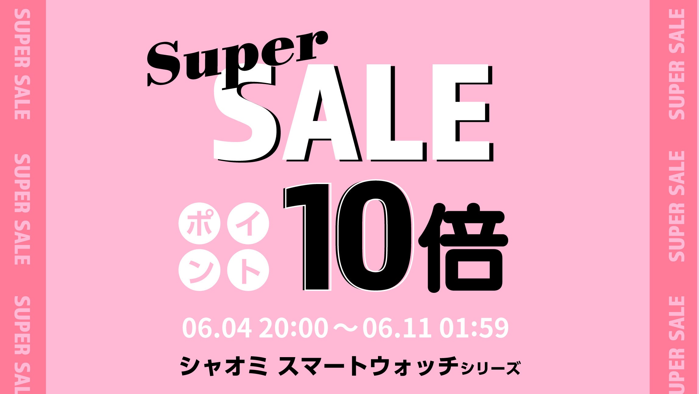 楽天市場「Show !t」6月4日20時開始、ポイント最大10倍、年4回のビッグセール「楽天スーパーSALE」に参加。Xaomi(シャオミ)スマートウォッチで健康管理を始めましょう。