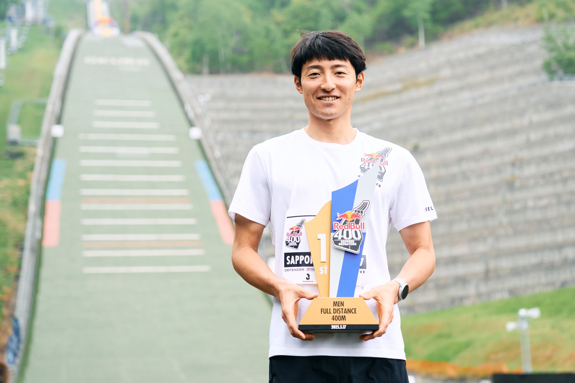 これ以上ない達成感で終わることができ、本当に嬉しいです。これまでの優勝と違って、特に今回は、「決勝のレースで手を使わないで走りきる」と自分に課した目標があって、それを達成しての優勝だったので、充実感は一味違いますね。実は、去年4連覇を達成した時点で出場はもういいかなと思いましたが、やはり「Red Bull 400」のエントリー開始時に自分の意に反してエントリーボタンを押してしまった経緯もあり。エントリー後に、「4連覇」より「5連覇」のほうが数字のキリがいいなとも思って、結構僕自身としては覚悟を持ってこのレースに出場したので、今のところ6連覇は本当に考えていないです。「ジャンプ台を逆走して走る」のは、このRed Bull 400じゃないとできない体験なので、特別な体験に少しでも興味があれば、迷わずエントリーしてほしいと思います。