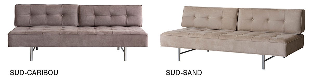 ハーマンソファは、SUD-CARIBOU(カリブー)、SUD-SAND(サンド)の2色をラインナップ。どちらもシックなカラーでお部屋に取り入れやすく、落ち着いた雰囲気を演出します。