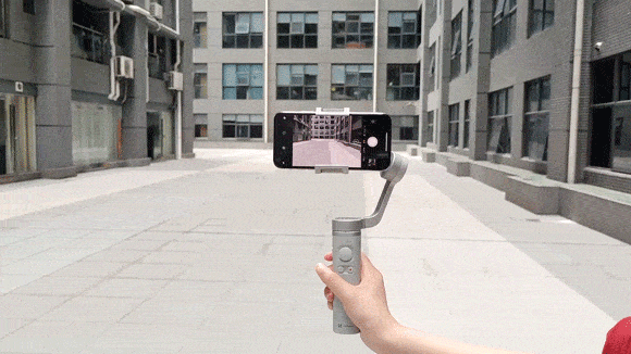 チルト軸がロックされ、スマホはロール軸の上下の動きと、パン軸の左右の動きに合わせて常に動き、安定した滑らかな映像を可能にします。