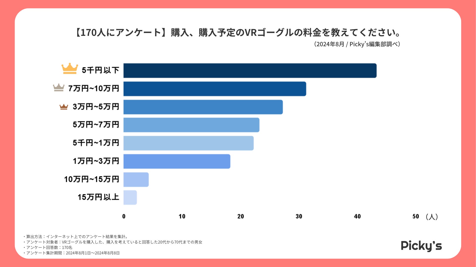 アンケート結果から、VRゴーグルの購入価格帯は大きく二極化していることが分かります。