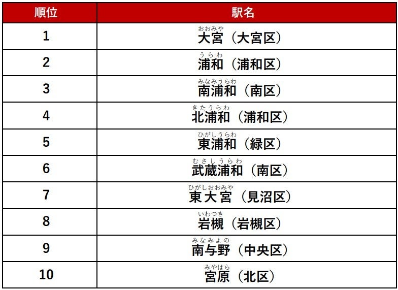 アットホーム人気の駅ランキング さいたま市編