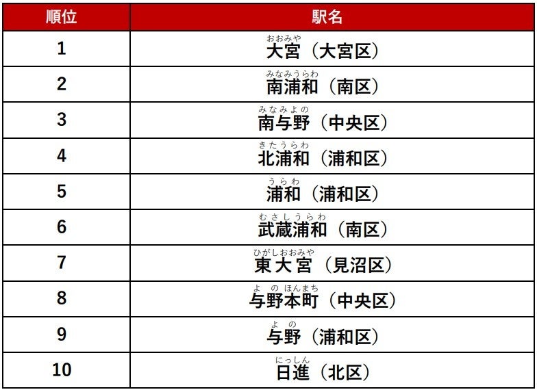 <「アットホーム人気の駅ランキング さいたま市編」 調査結果>