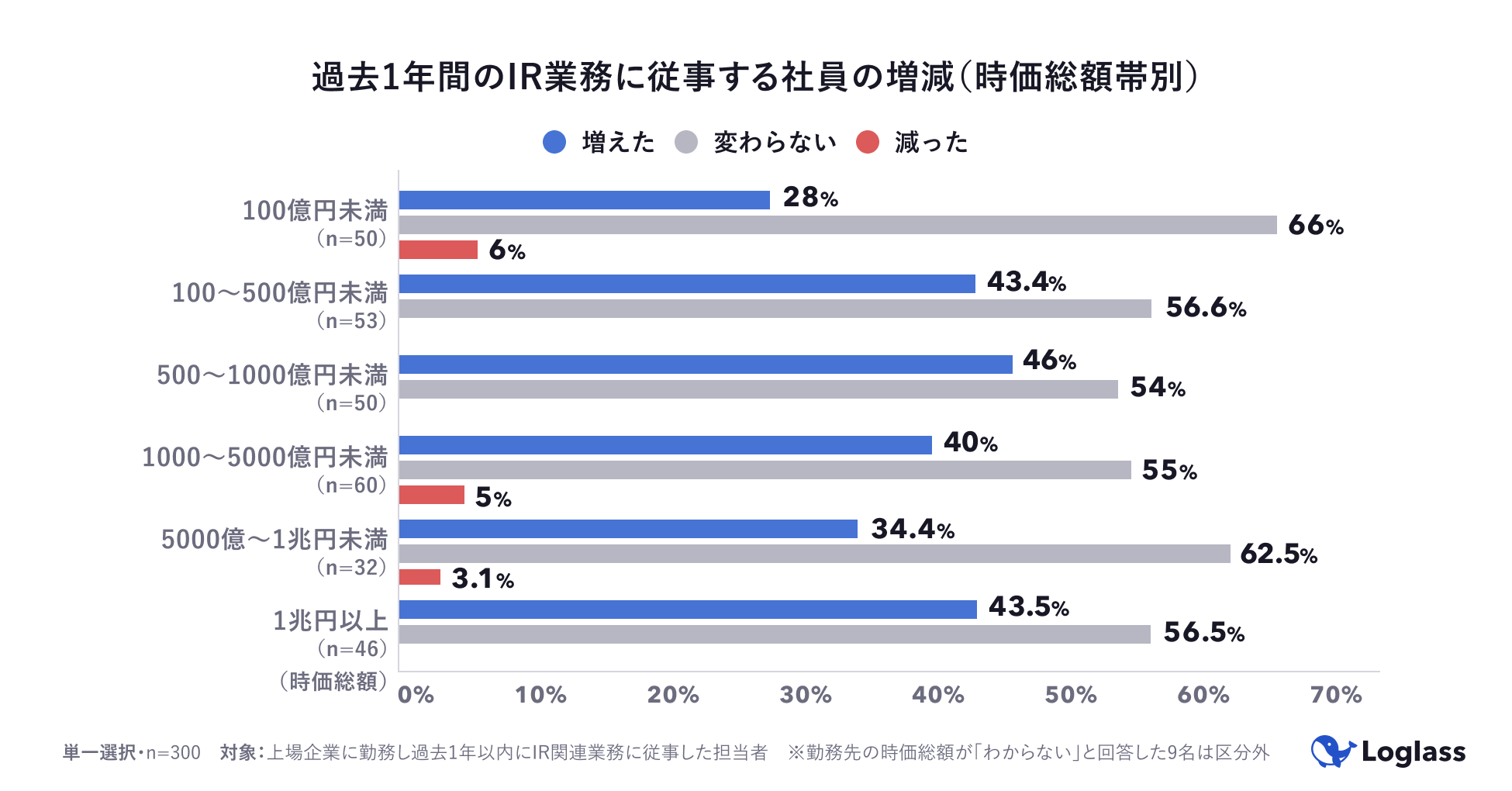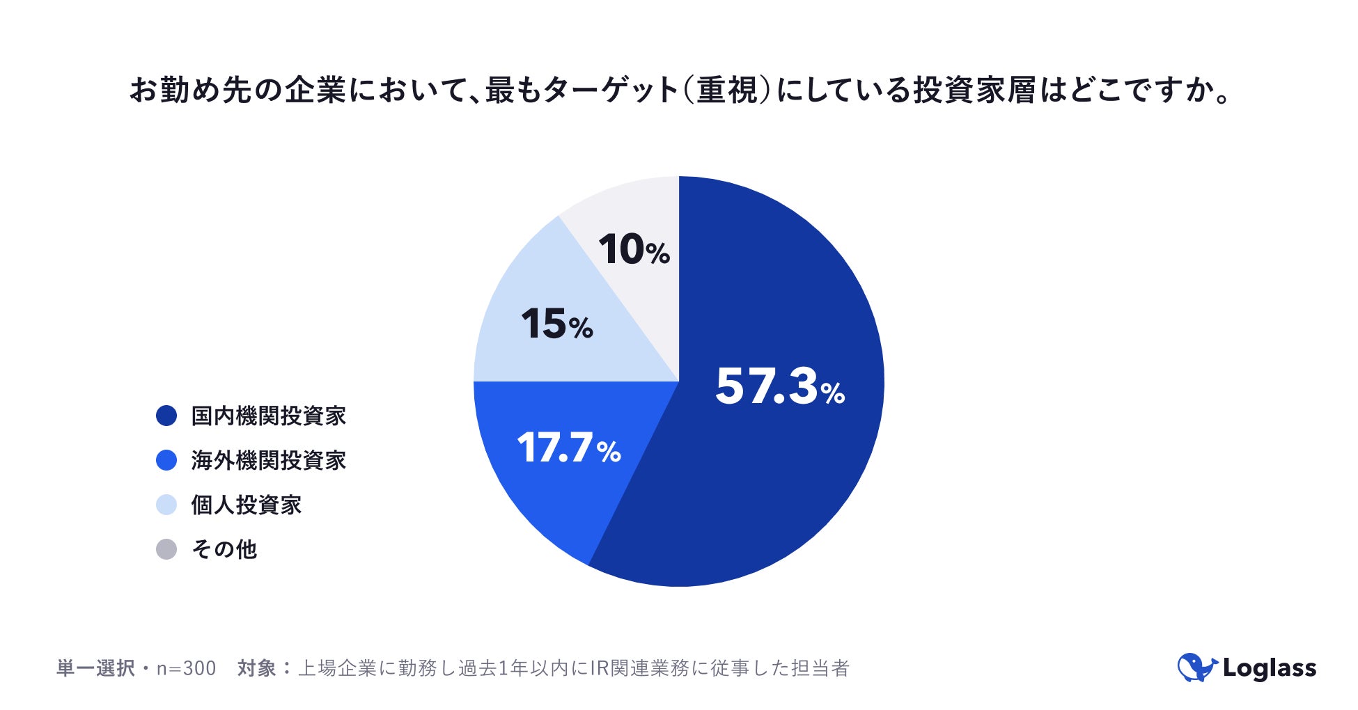 株式会社ログラス(本社:東京都港区、代表取締役 執行役員CEO:布川 友也、以下「当社」)は、上場企業でIR関連業務に関与する担当者300名を対象に「上場企業のIR部門における業務実態調査」を実施しました。