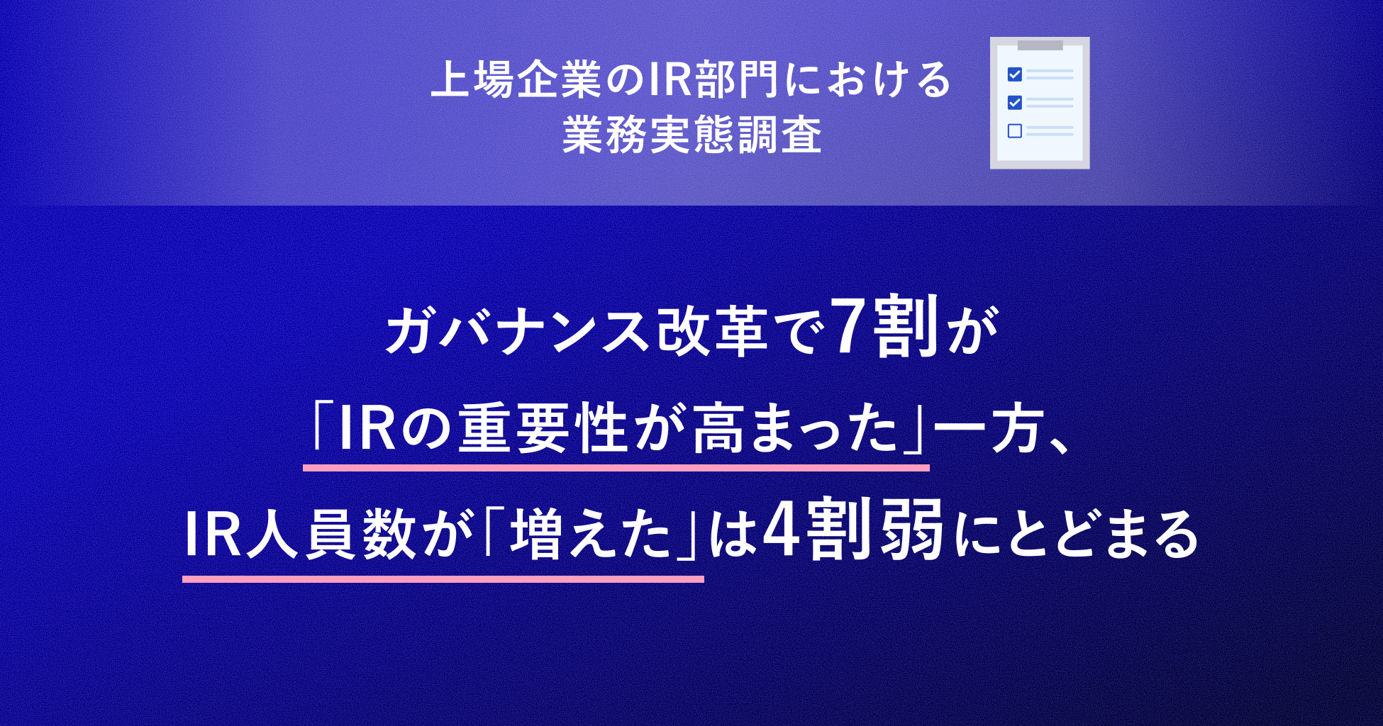 本調査は、この環境下でIR関連業務に関与する担当者の実態と認識を把握し、課題を可視化することを目的とします。