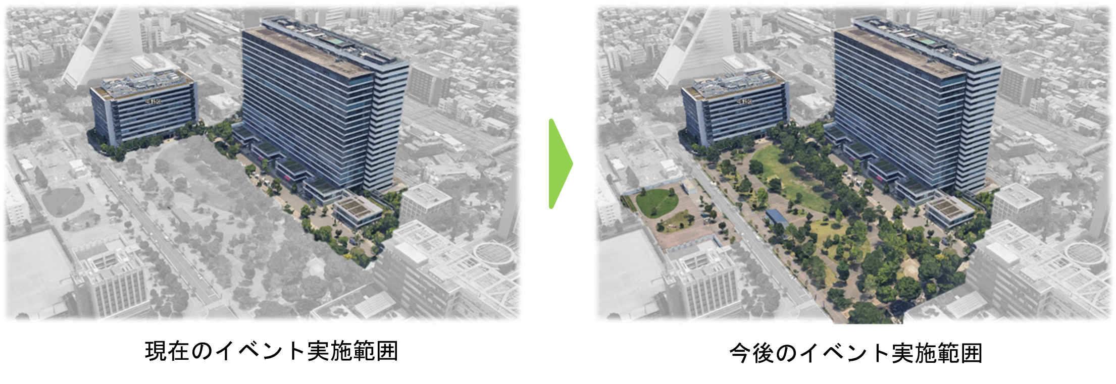 JR・東京メトロ「中野」駅周辺で複数の再開発計画が進行している中、中野駅近くに位置する本公園において積極的なイベント誘致等を行うことにより、再開発工事期間中のにぎわい維持や、再開発後も見据えたエリア全体の知名度および魅力度の向上、地域経済の活性化に取り組みます。また、本公園に隣接する東京建物保有のオフィスビル「中野セントラルパークサウス」を活用したより安全かつ一体的な管理体制を構築してまいります。
