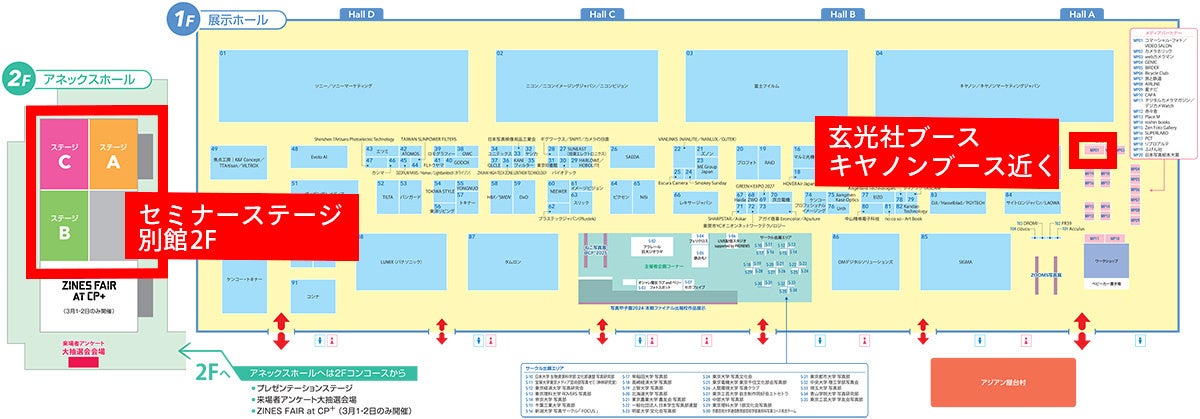 玄光社ブースは本会場、キヤノンブース向かい。映像・写真関連書籍を販売! CREATORS EDGE Spring Edition・玄光社新刊書籍ステージはアネックスホールで実施。
