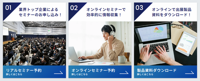 来場登録によりセミナー無料申込、出展製品資料ダウンロードなど様々な特典がございますので、ご登録の上、ぜひご来場ください。