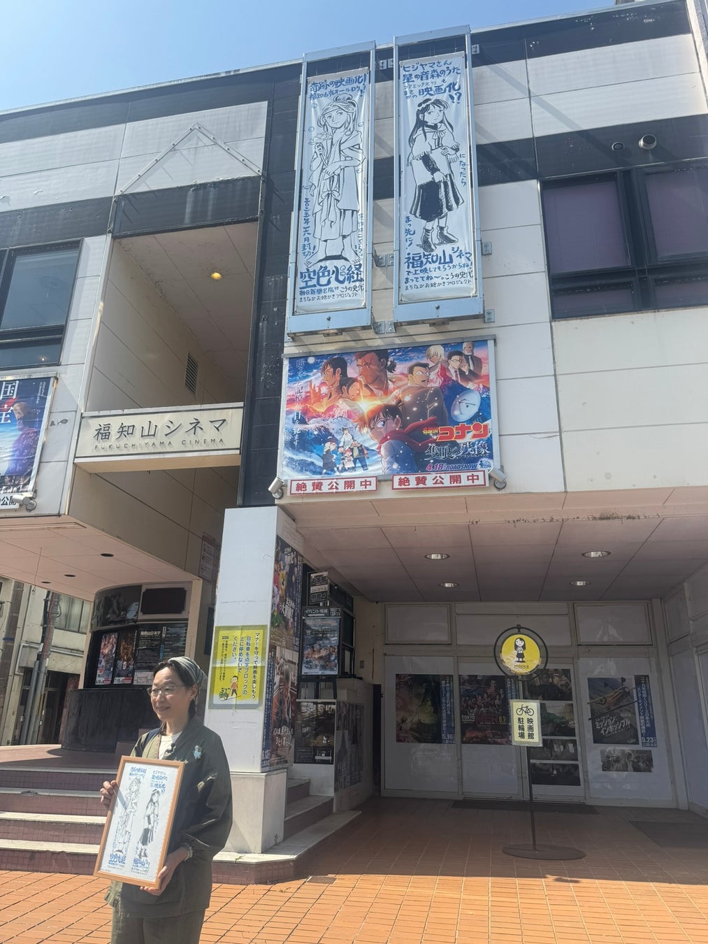 ○福知山市内唯一の映画館「福知山シネマ」では、こうのさんイラストの懸垂幕を掲げるほか、過去にこうのさんのトークショーや原作映画『この世界の片隅に』上映とパネル展示を実施。