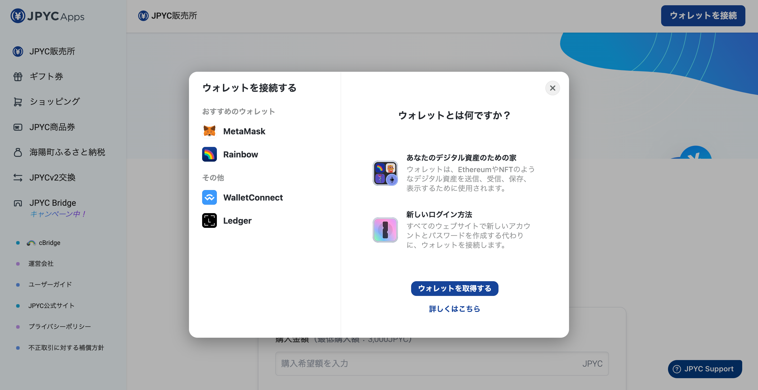 JPYC Apps v2へのアップデートでは、ウォレット機能の対応拡大とサイトデザインにおけるレイアウトの最適化、Matamask内のブラウザ以外の各種ブラウザへの対応を行いました。