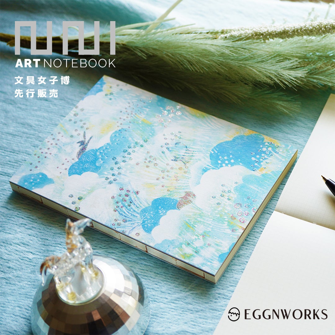 一般公募からデザインを選定するアートノートブックに新作が登場!「Ojiro」さんによる猫が草原で遊ぶ様子を描いた作品を、草花にラメバーコ加工を施して再現。見る角度によって輝きが変わるキラキラの装丁を、ぜひ会場でご覧ください。
