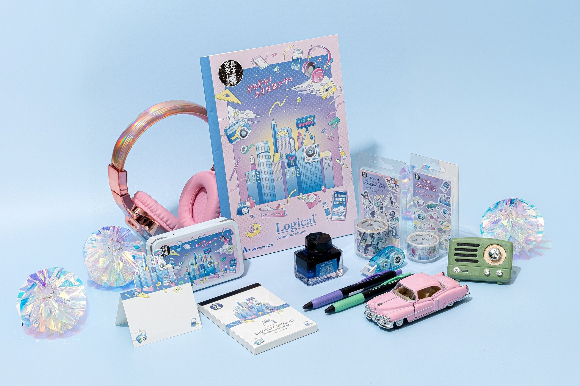 文具メーカーとコラボしたオリジナルグッズは、すべて文具女子博限定の特別アイテム。今回の開催テーマ「どきどき!ネオ文具シティ」をイメージしたデザインのグッズはご来場の記念や、周りの文具好きさんへのお土産にもぴったりです!