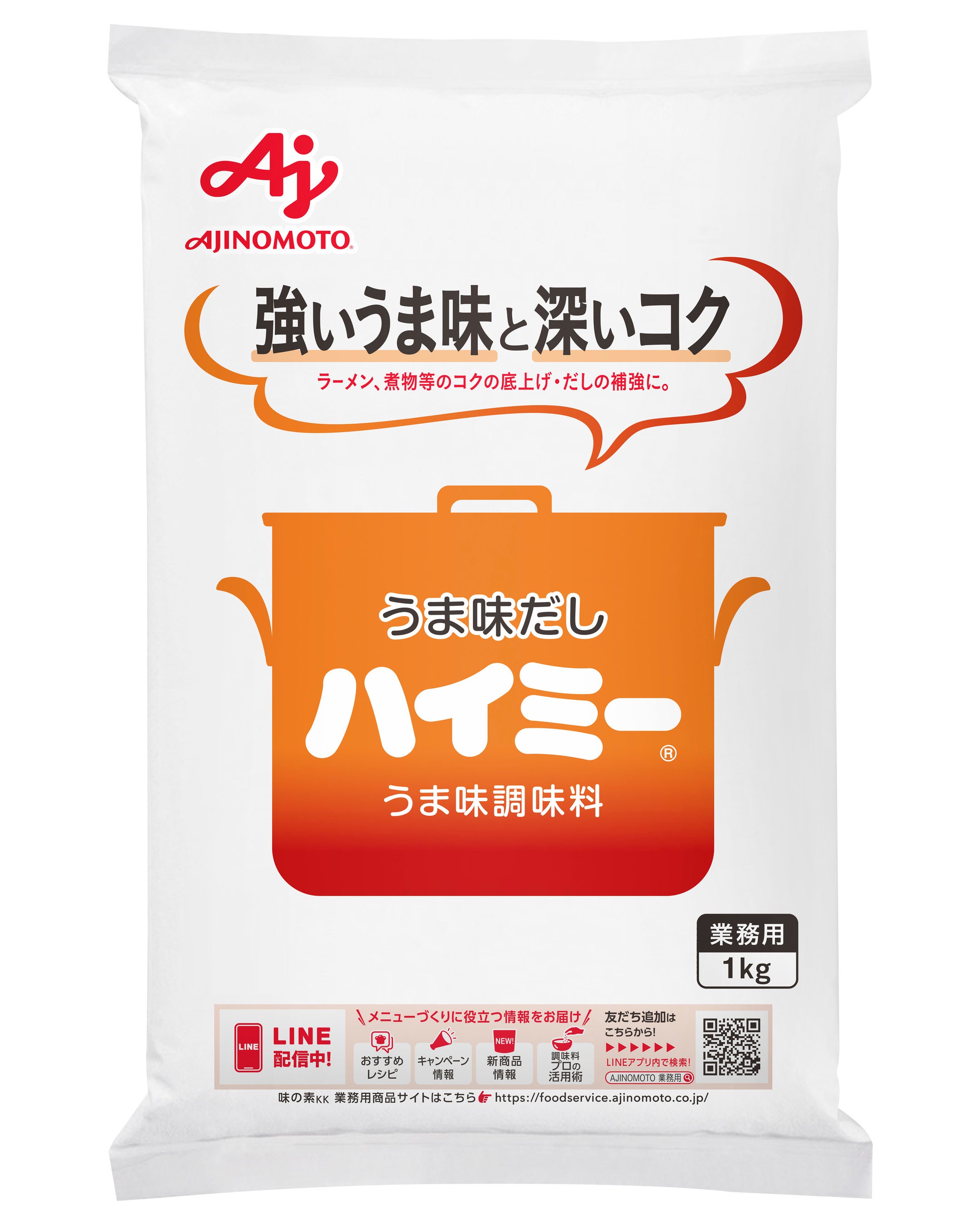 また、簡単に大量調理可能な「クノール®クイックサーブ®スープ」と、手軽に個食調理ができる「クノール®ランチ用スープ」を、複雑で豊かな野菜の風味とコクを感じる品質にリニューアルしました。さらに、業務用「味の素ⓢ®」のパッケージデザインに新しいグローバルブランドロゴを使用し、業務用「ハイミー®」は製品特長の「強いうま味と深いコク」が分かりやすいデザインにリニューアルしました。
