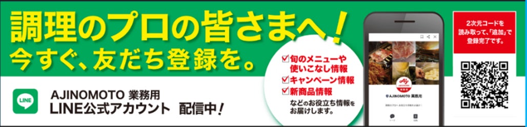 味の素KKはLINE公式アカウントを開設し、プロの皆さまにメニュー作りに役立つ情報をお届けしています。
