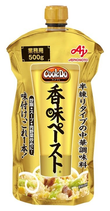 500gの大容量でありながら、片手で持ちやすく絞り出しやすいスパウトパウチに入っており、これ1本で、炒飯、スープ、肉野菜炒めなどの中華料理が手軽においしく調理できます。