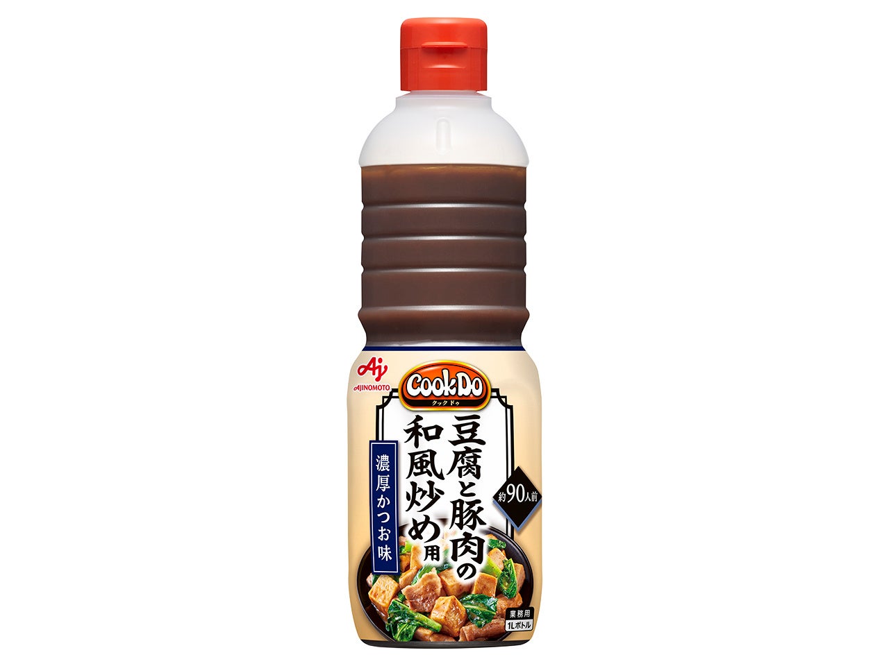 濃厚な鰹だしの風味に加え、ごま油や味噌でコクを出した和風メニュー用調味料です。豆腐と豚肉の炒め物をはじめ様々な和風メニューにご使用いただけます。
