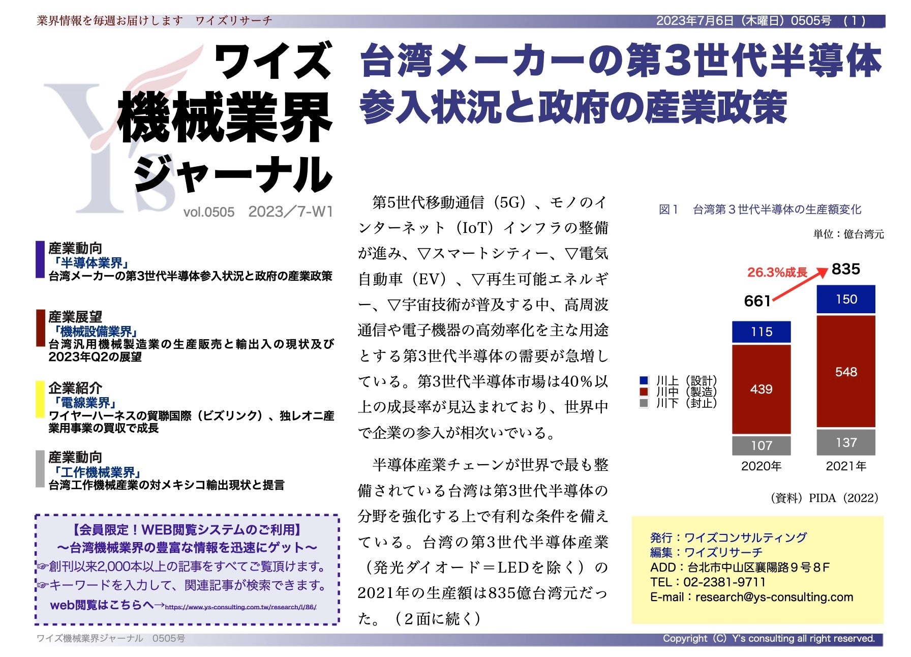 【台湾情報】台湾メーカーの第3世代半導体参入状況と産業政策<ワイズ機械業界ジャーナル2023年7月第1週号発行>