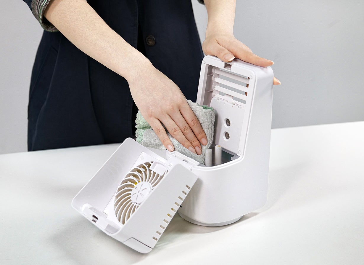 超音波振動でミストを噴出する仕組みで、水分が蒸発する際に周囲の熱を奪う気化熱を利用することで冷却効果実現。
