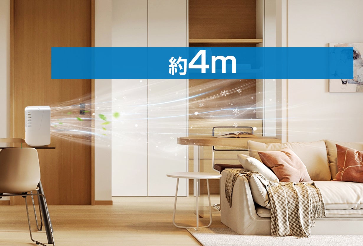 送風距離は最大約4mまでできます。
