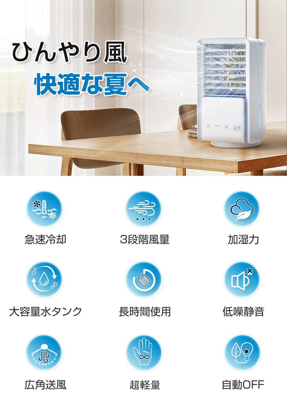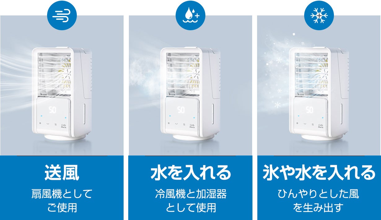 通常の扇風機より冷却性に優れて、ひんやりとした風を感じることができます。