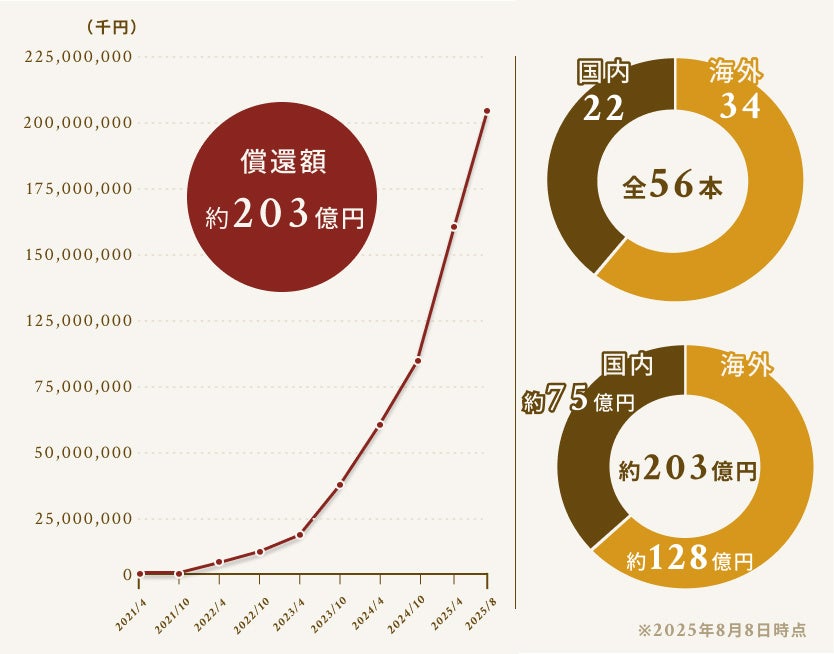 TECROWDでは今まで、56ファンド、合計約203億円の元本償還を実施しています。