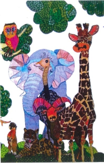 この度は、パラアート賞を頂いて嬉しいです。有難うございます。20年の間に動物の絵もたくさん描きました。その中で代表的な動物、キリン・象・ムフロン・ダチョウ・豹・ミーアキャット・梟達に記念写真を撮るように、1枚の紙に集合してもらいました。みんなカメラ目線で楽しそうな雰囲気になってよかったです。