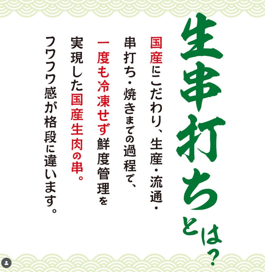 使用する肉は、厳選した国産生肉のみ。生産から流通、串打ち、焼き上げに至るすべてのプロセスで一度も冷凍を行わず、徹底した鮮度管理を実現しています。