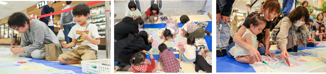当日はご家族連れをはじめ、浦安市の地域のお客様約100名に参加いただき、皆様、会話を交わしながら活き活きとした表情でこいのぼりに夢を描いていました。