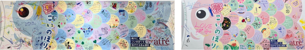 アトレ新浦安オリジナルの色鮮やかな2匹のこいのぼりに参加者が自分の夢を描き、最大で3.25mの大きな夢こいのぼりを完成させました。