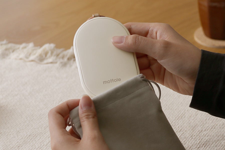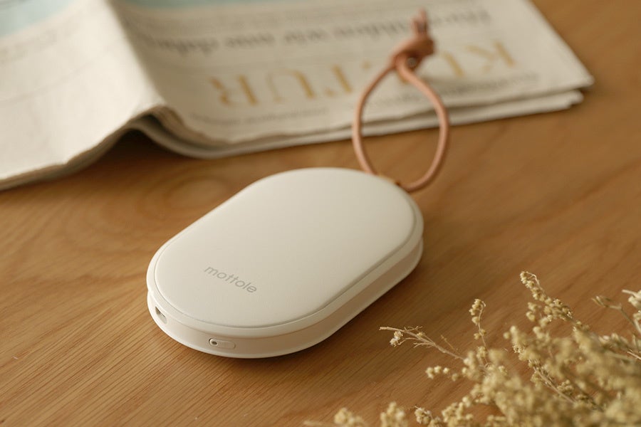 累計売上5万台超、2019年からのロングセラー商品「充電式カイロ モバイルバッテリー機能付」に、2023年は新色のピンクが追加。全4色展開でmottole(モットル)より発売。