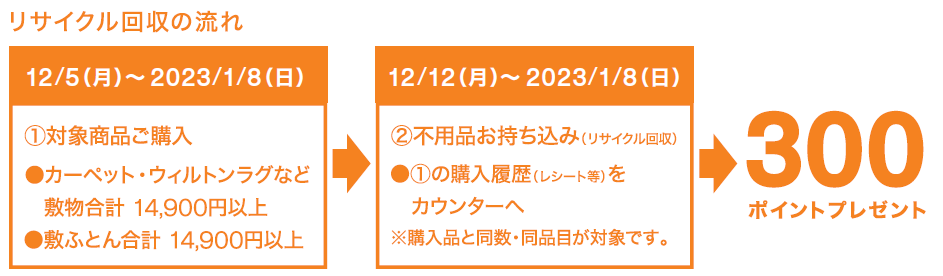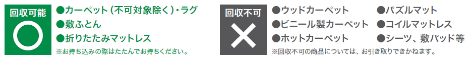 年末年始の大掃除の時期に、来たる新年に向けてカーペット・敷ふとんの処分や、お買い替えをご検討中のお客様は、是非この機会に、本取り組みにご参加ください。