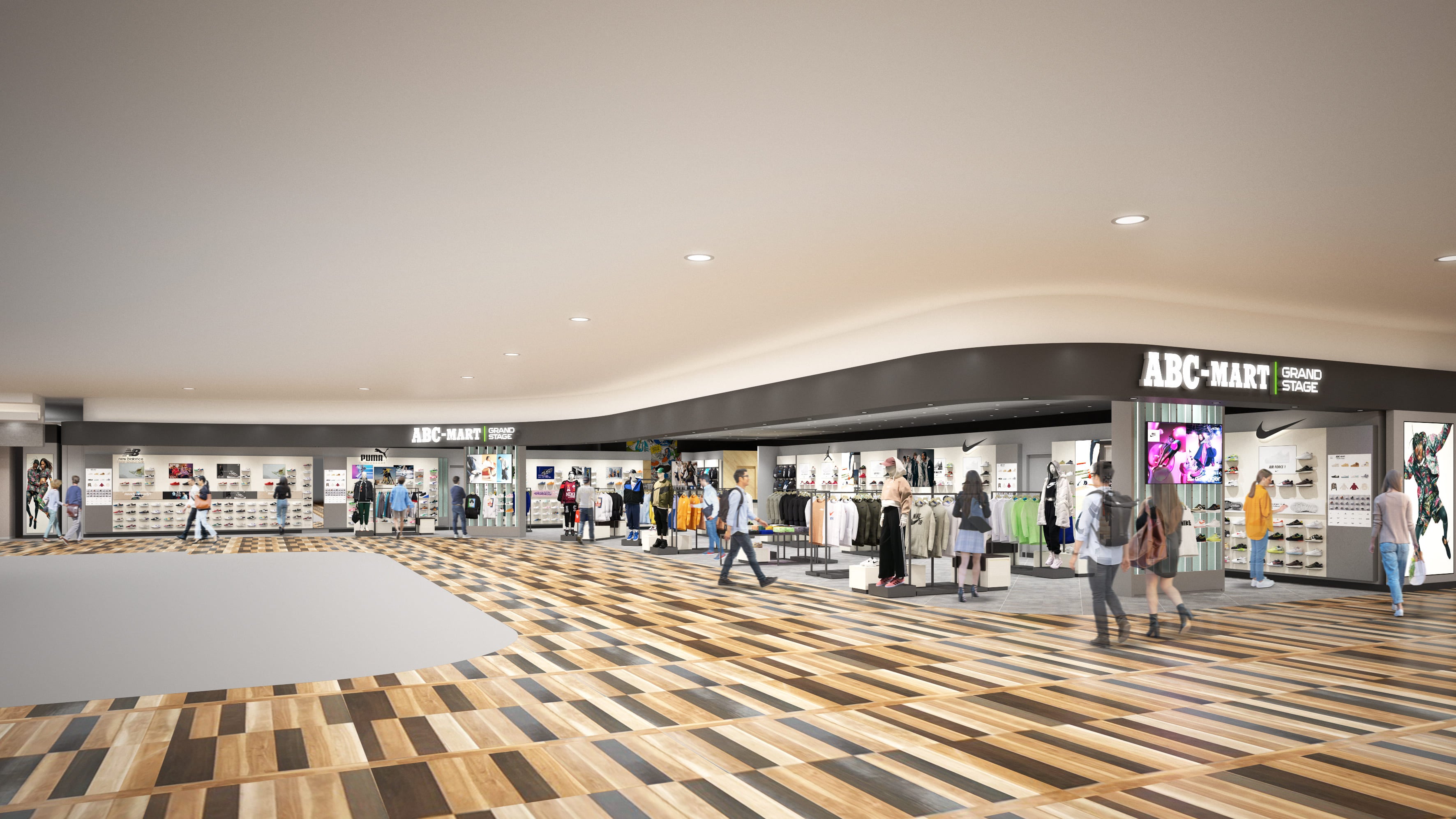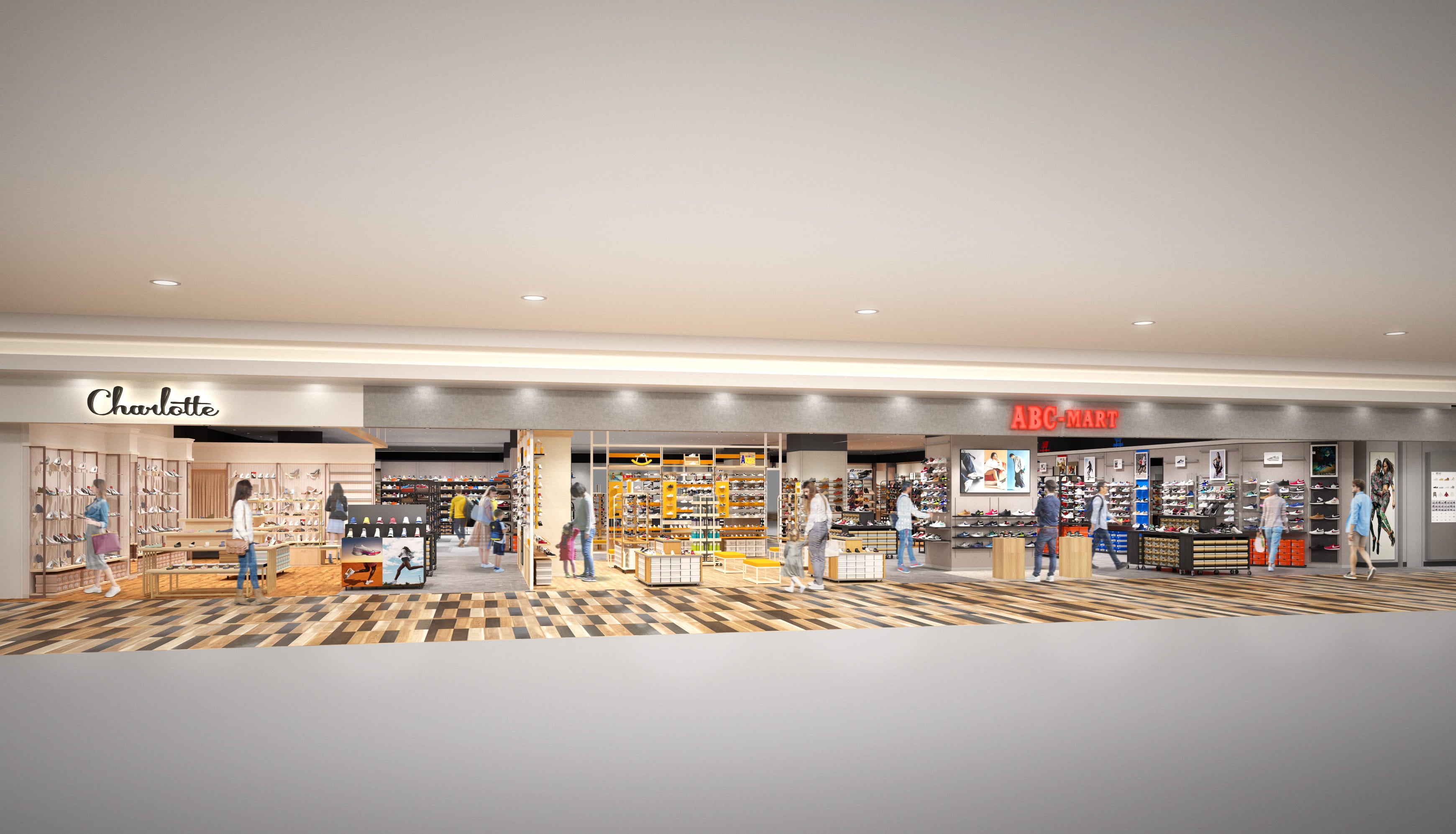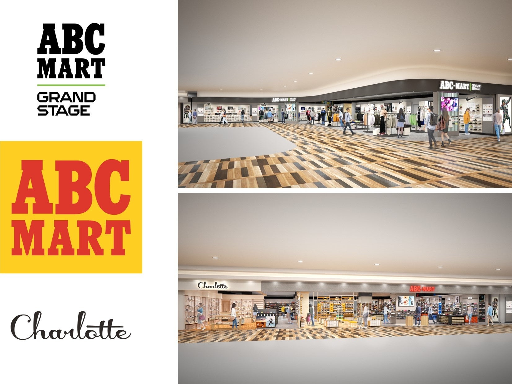 通常のABC-MARTとは、商品のセグメント、MDなどを変え、トレンドアイテムを厳選の上取り扱い、ファッションアパレルなどを展開する「ABC-MART GRAND STAGE」、子どもから大人までライフスタイルや用途に合わせて多種多様なシューズを取り扱う「ABC-MART」、仕事もプライベートも自分らしく楽しむ女性に向けた、世界中から集めたアイテムが揃うライフスタイルセレクトショップ「Charlotte」が隣接してオープンします。