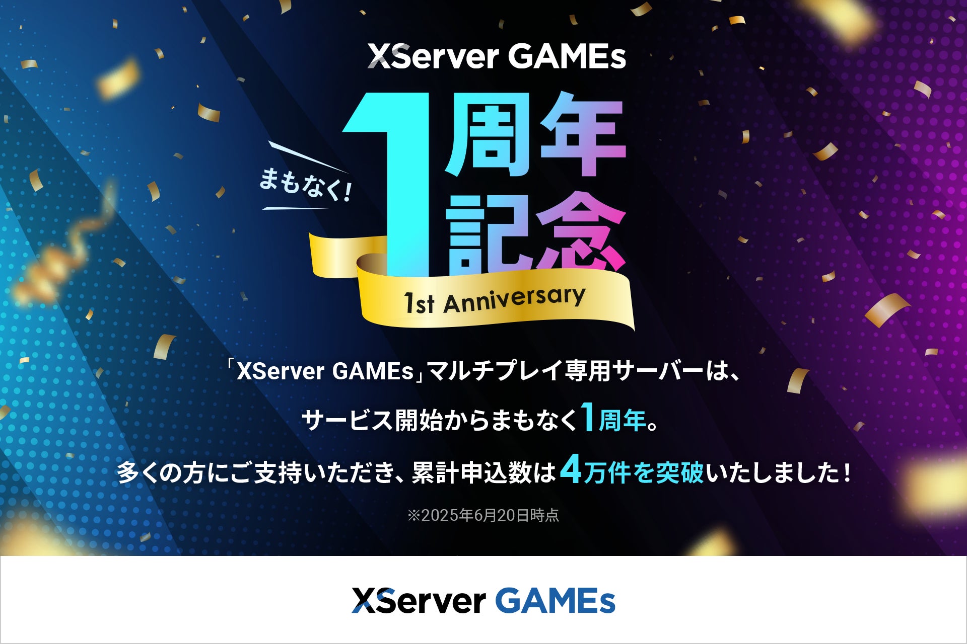 エックスサーバー株式会社(所在地:大阪市北区、代表取締役:小林 尚希)は、当社が提供するゲームサーバー専用サービス『XServer GAMEs』が、 2025年6月27日にサービス開始から1周年を迎えることをお知らせします。