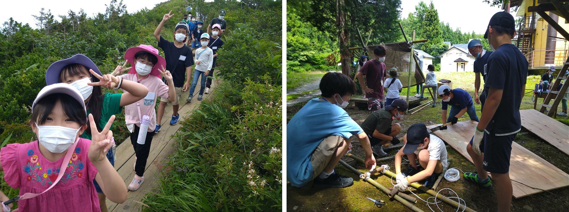 アスレチックで遊ぼう、ツリーハウス作りにチャレンジ、竹の水鉄砲づくり