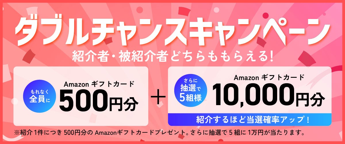 Amazon ギフトカード500円分を「あなた」と「紹介した方」のお二人に進呈!