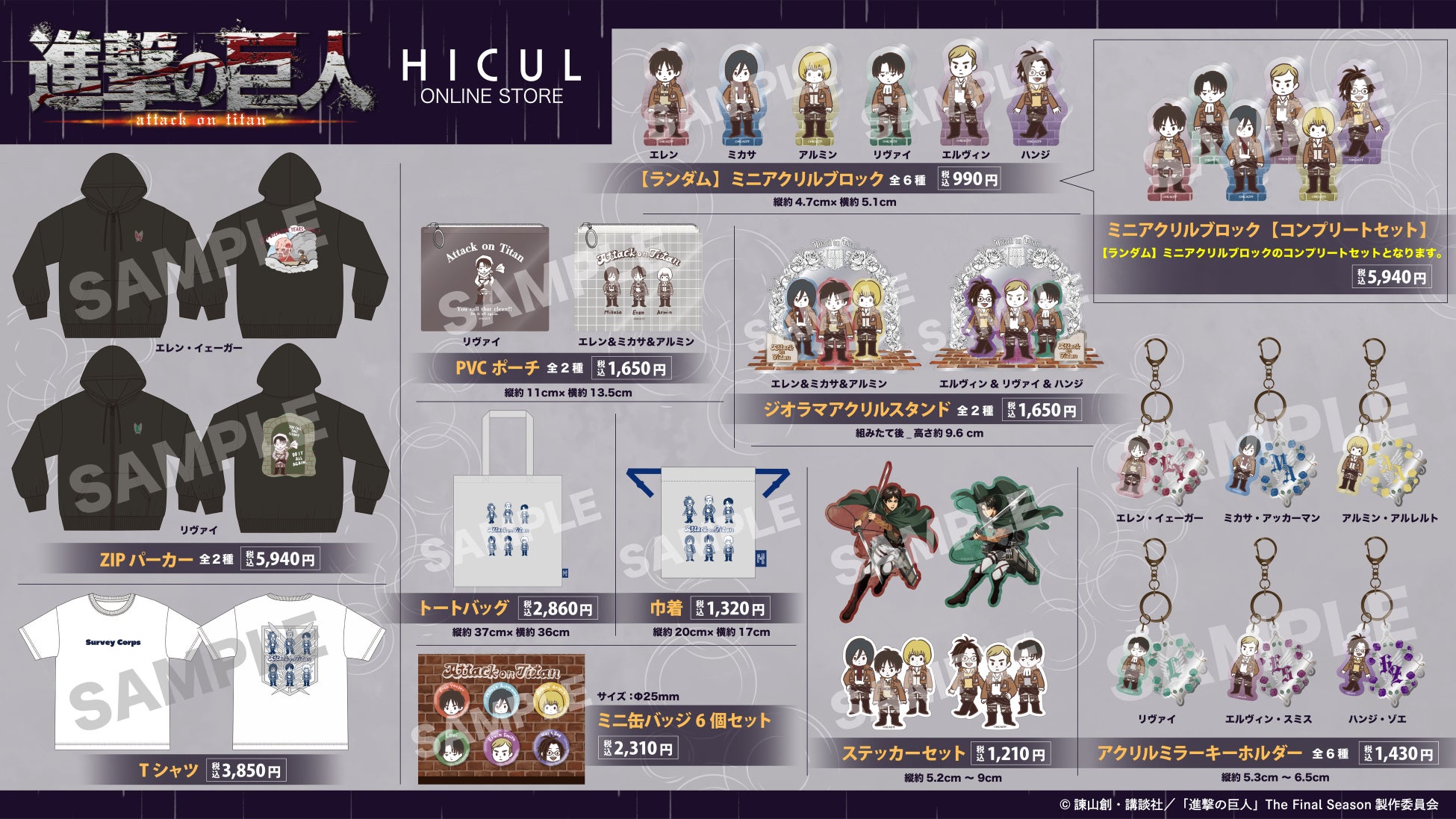TVアニメ『進撃の巨人』描き下ろし&描き起こしイラストのアイテムが登場!アニメ・漫画版権専門ECサイト『HICUL(ハイカル)』より販売開始!