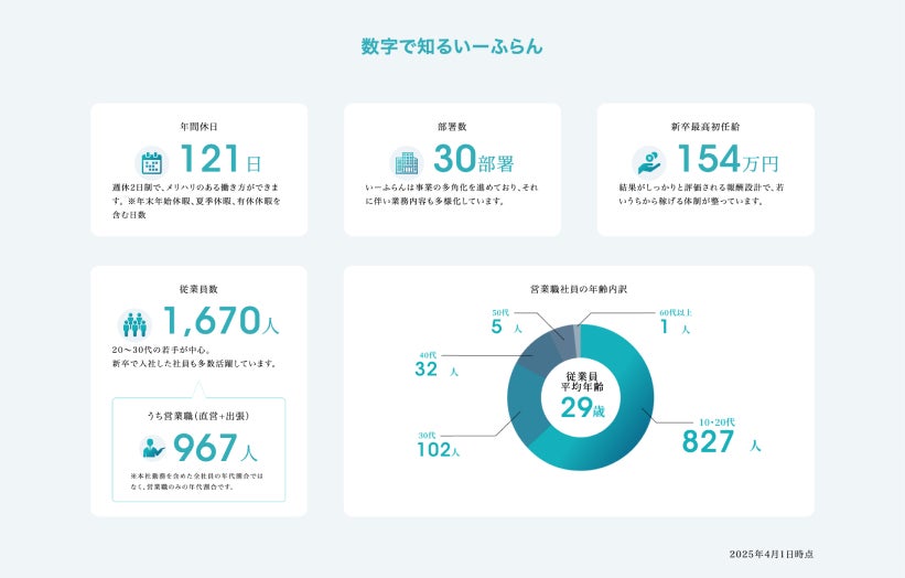 新卒採用ページでは、当社の最前線で挑戦を続ける新卒入社社員たちのインタビューを公開しております。就活軸やいーふらんの決め手、今後の目標などありのままを語ってくれています。是非ご覧ください。
