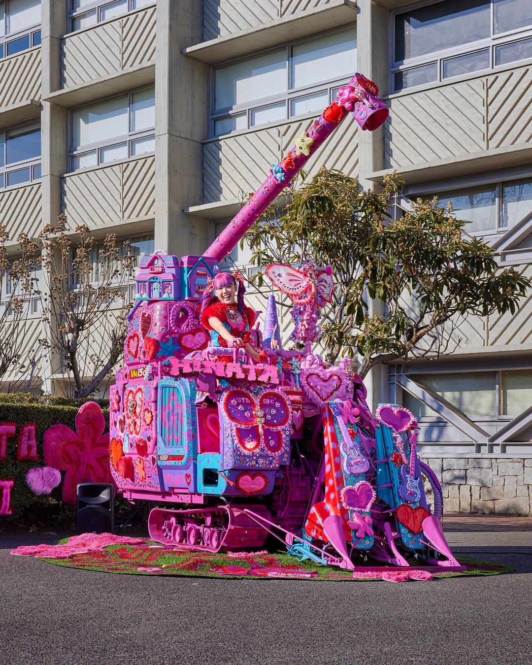 農業機械であるコンバインを、徹底した装飾と色彩によって“可愛い”“楽しい”存在へと転換した発想力が際立っています。ハートや玩具的モチーフ、身体性を伴うパフォーマンスまで含め、機械を静的な展示物ではなく、社会とコミュニケーションするメディアとして成立させている点が高く評価されました。農業の現場性とポップカルチャーを真正面から衝突させ、違和感そのものを魅力へと昇華した、強度ある表現です。