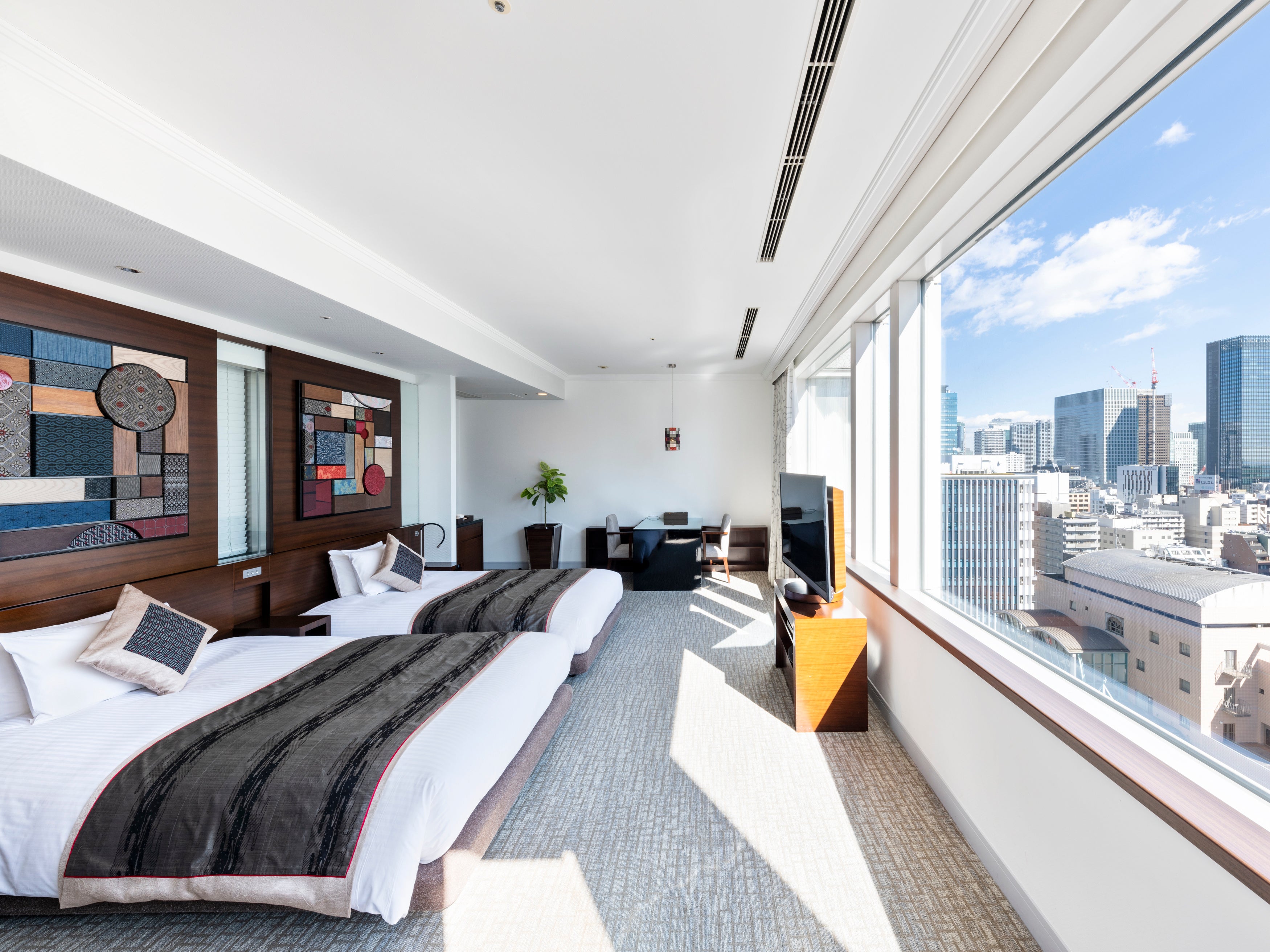 さらに、大きな窓を備えた客室からは自然光が差し込み、都心にありながら開放感と静けさを味わえるのも大きな魅力です。 上質なインテリアに囲まれながら、都会の喧騒を忘れるようなリラックスしたひとときをお過ごしいただけます。