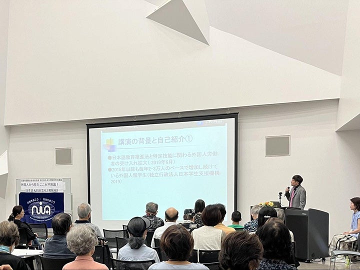講演では外国人から見た日本について「言語編」、「文化編」の2パートで解説し、参加者は国内で生活しているだけでは気づくことが難しい、日本の見え方について理解を深めました。