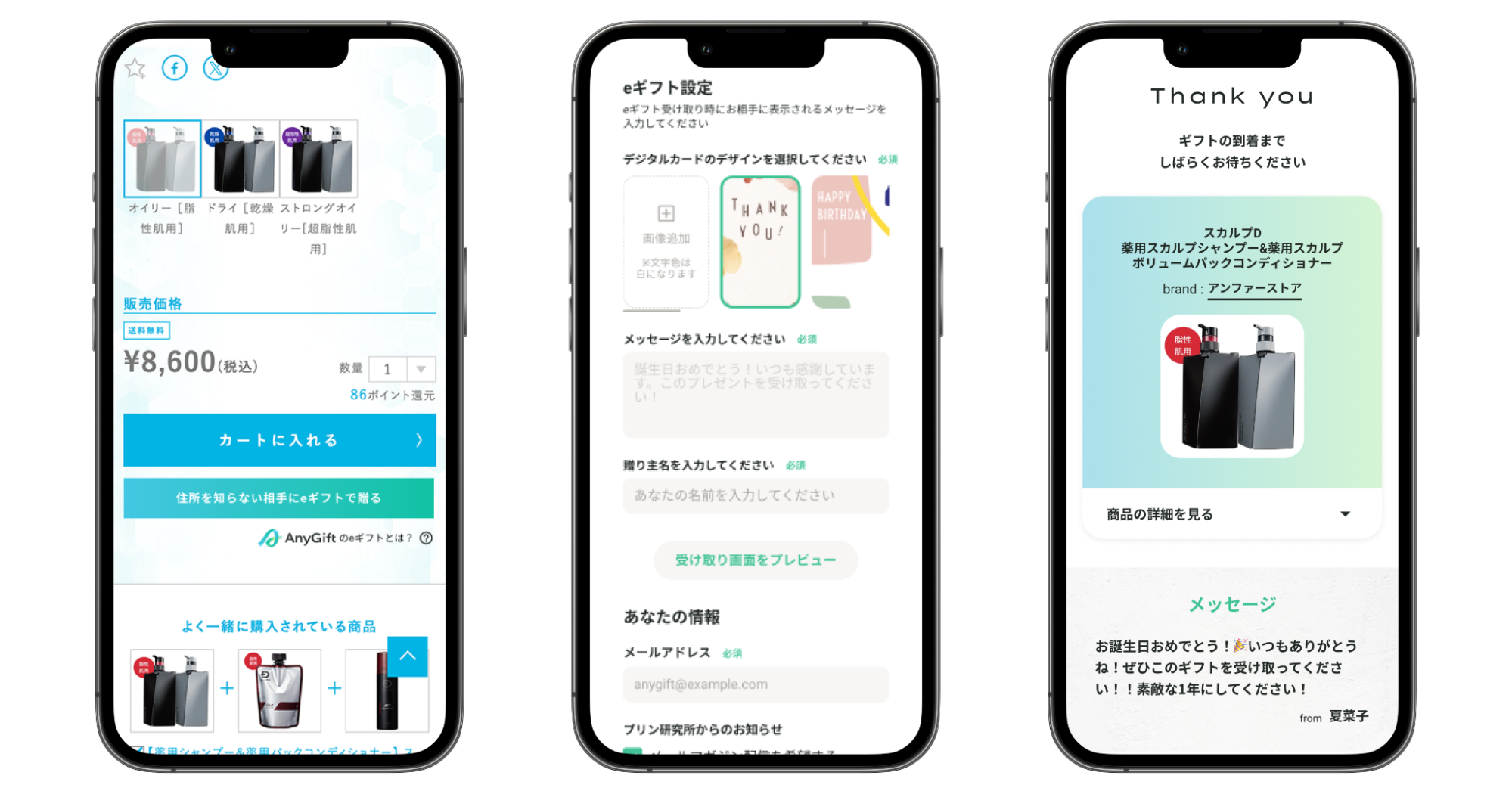アンファーストア、LINEやメールで「スカルプD」など人気商品を気軽に贈れるeギフトサービス「AnyGift」導入