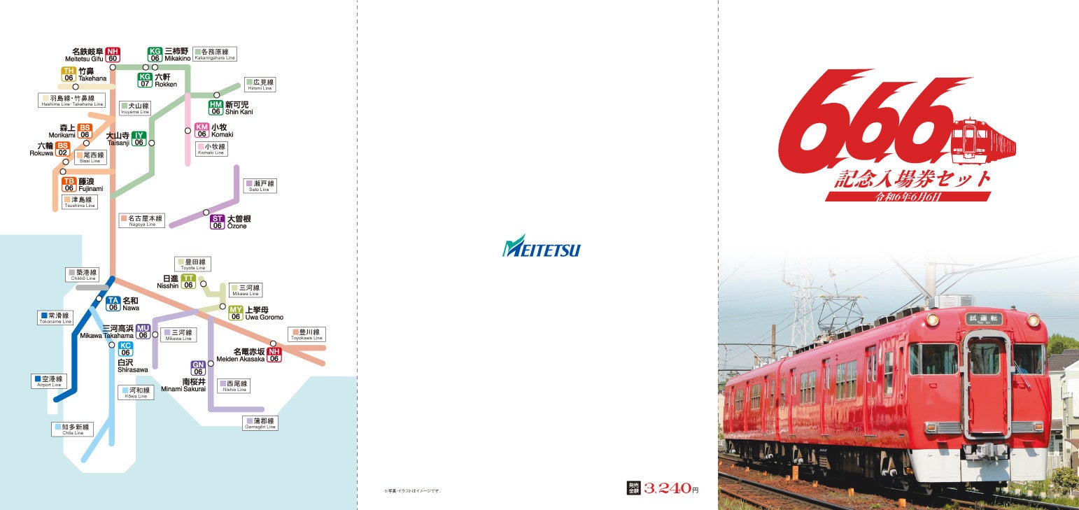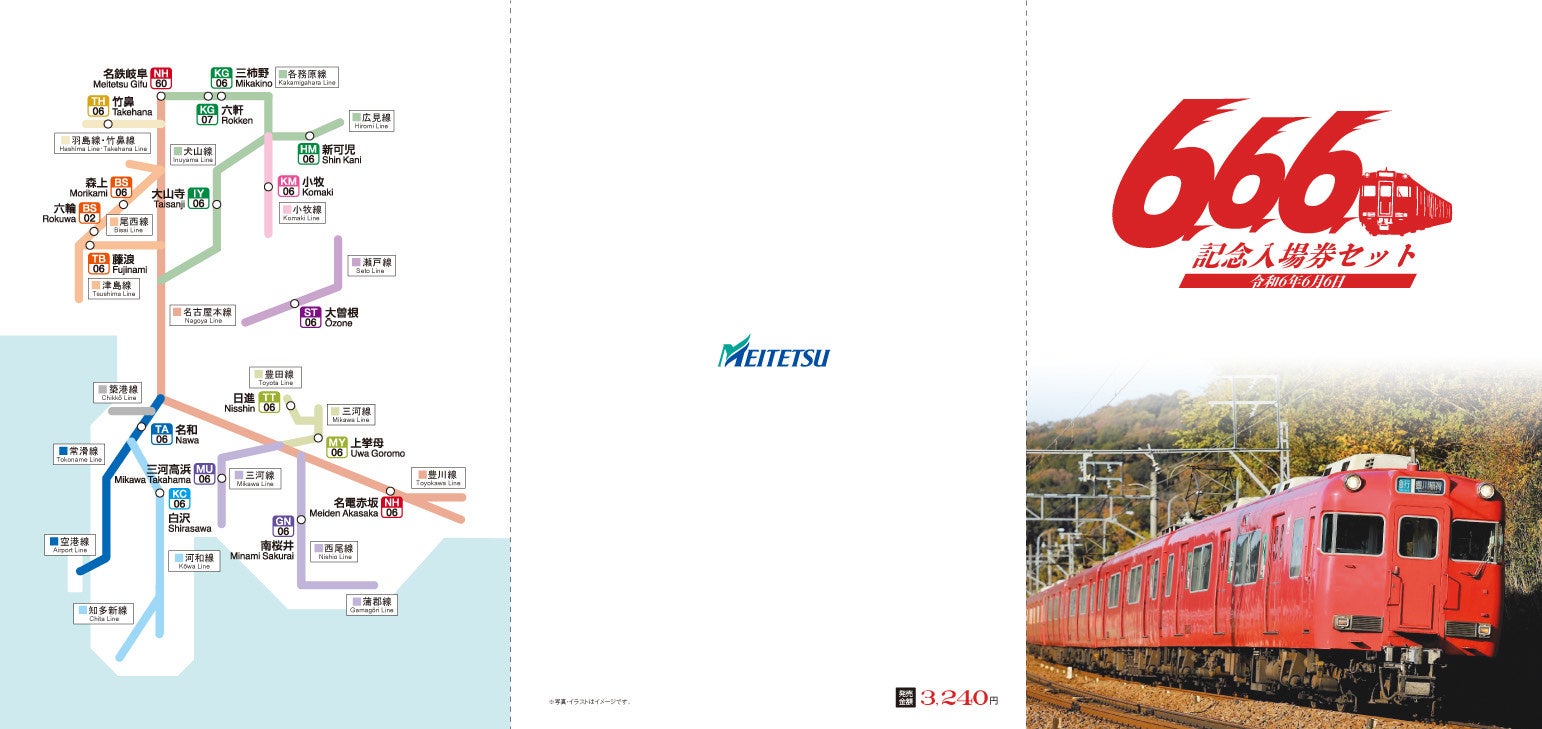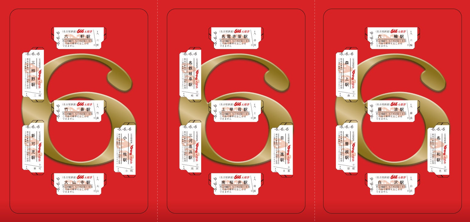 名古屋鉄道は、令和6年6月6日に、日付が「6・6・6」と並ぶことを記念して、「『666』記念入場券セット」を発売します。