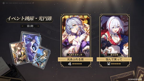 同時開催のイベント跳躍・光円錐「光陰を定めし影」では、限定星5光円錐「光あふれる夜」(調和)が登場し出現率がアップ!